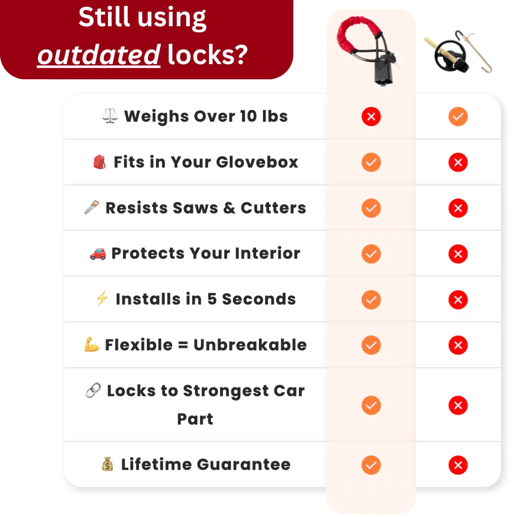 Your seatbelt anchor is rated for 6,000+ lbs of crash force - far stronger than the soft foam steering wheel that traditional locks attach to. Thieves would need specialized rescue tools and several minutes of noisy work, so they move to easier targets.